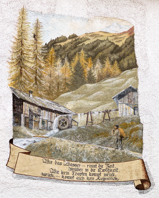 einige Gebäude, welche mit Gemälden geschmückt sind. Eines der