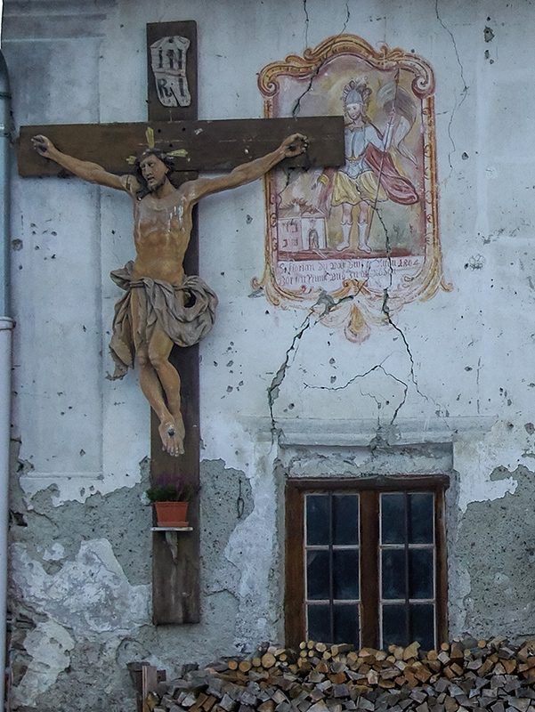 verblasste Abbildung des Hl. Florian wird zu einem Teil